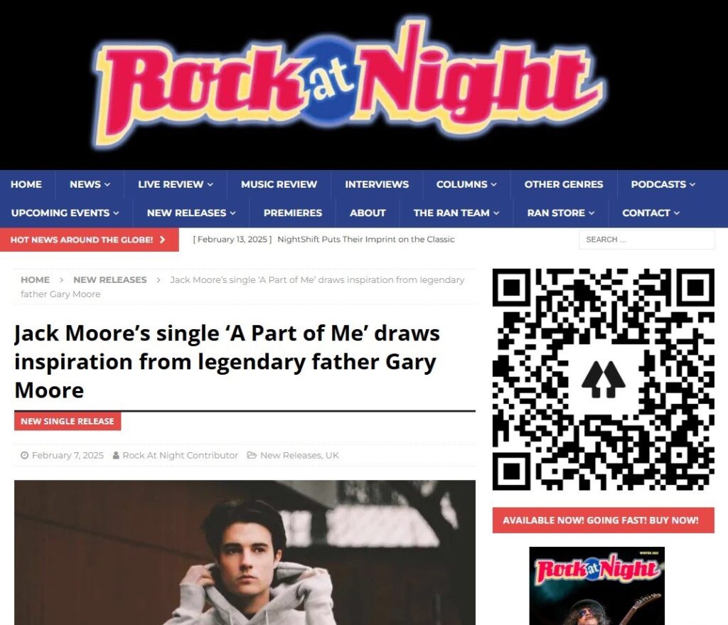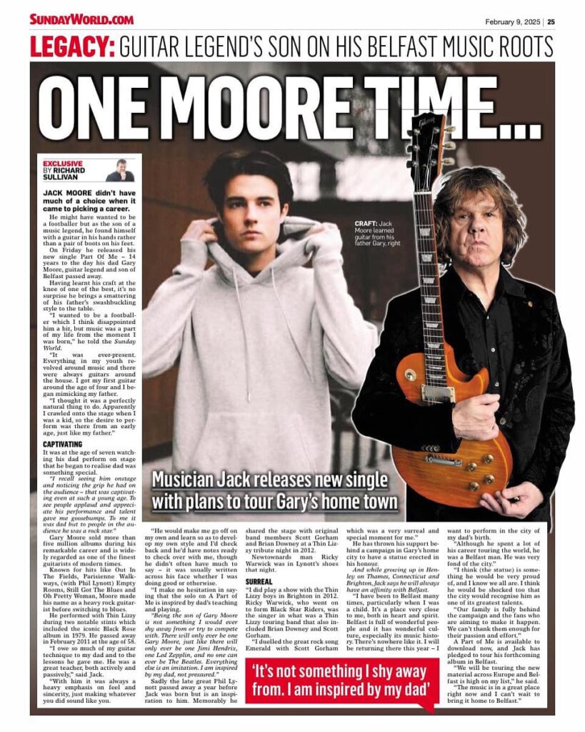 Jack Moore released a new song “A Part Of Me” on February 7, 2025 by Bogdan Topolski · 2025/02/08 Jack Moore, son of legendary Thin Lizzy and blues guitarist Gary Moore, has drawn inspiration from childhood guitar lessons with his late father in his new song, ‘A Part of Me’. More: