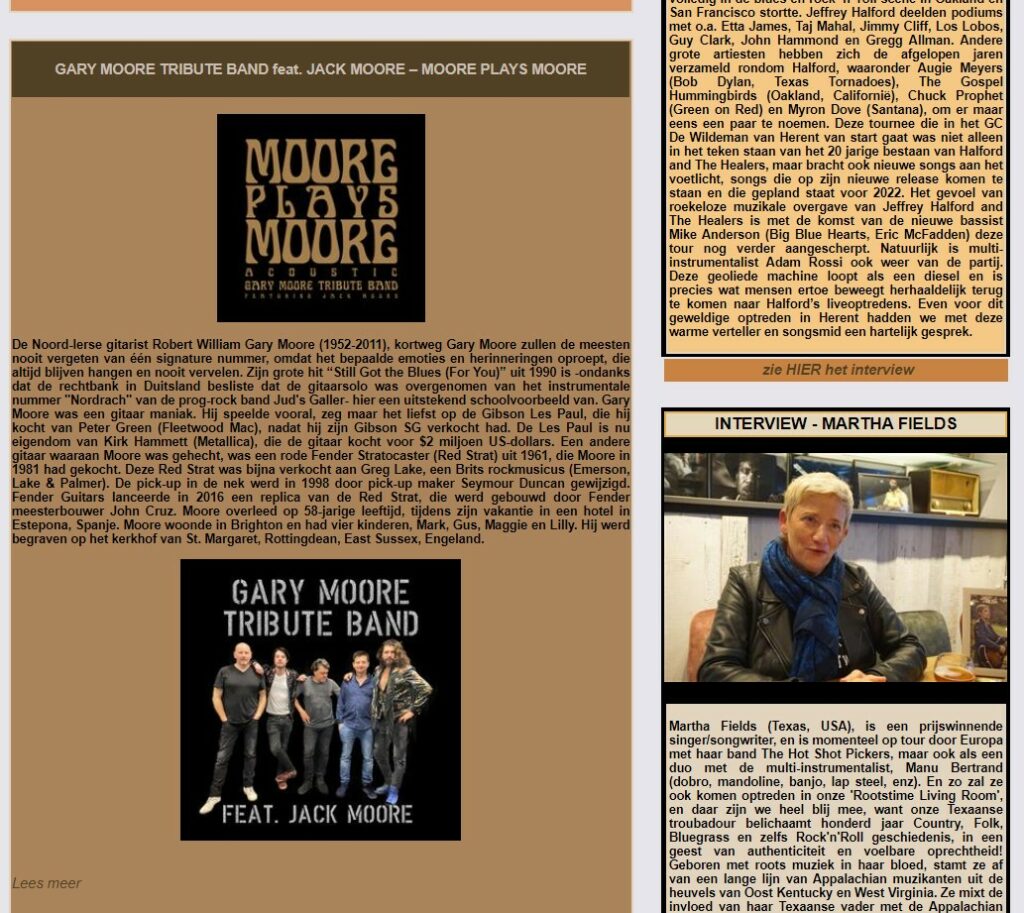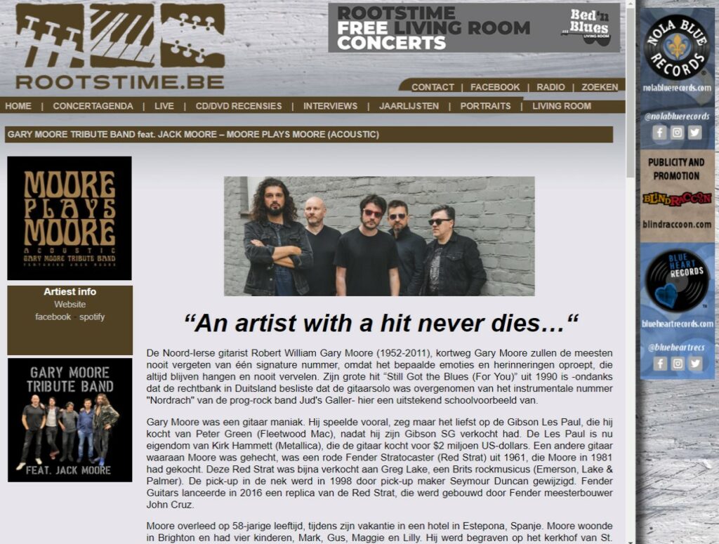 Gary Moore Tribute Band Featuring Jack Moore – Belgian website rootstime.be