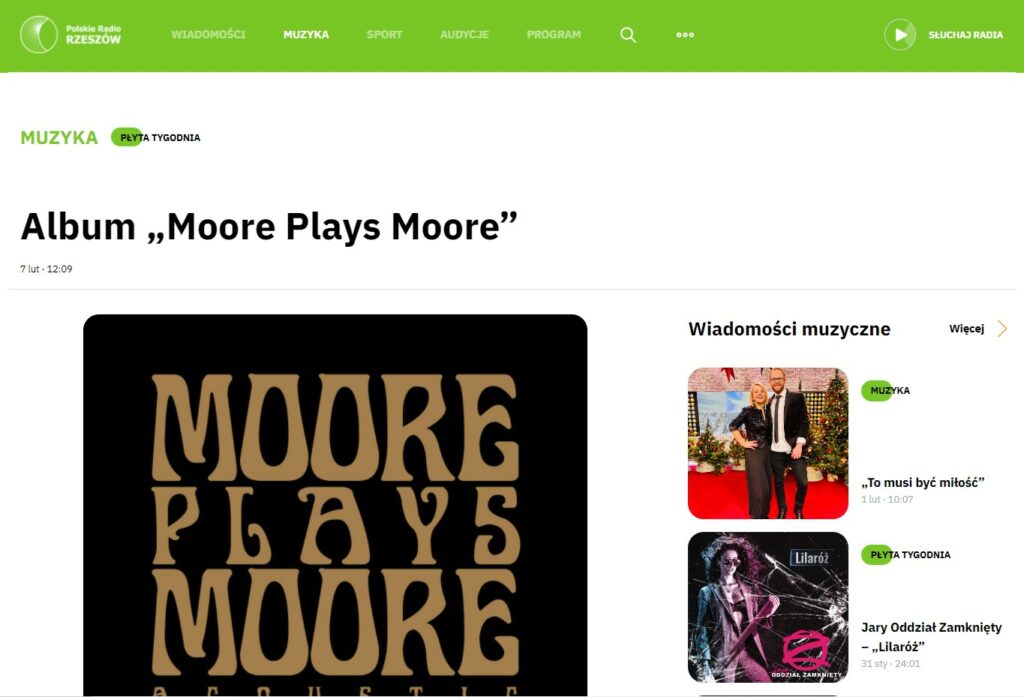 The album “Moore Plays Moore – Acoustic” – the album of the week on Radio Rzeszów, 2022